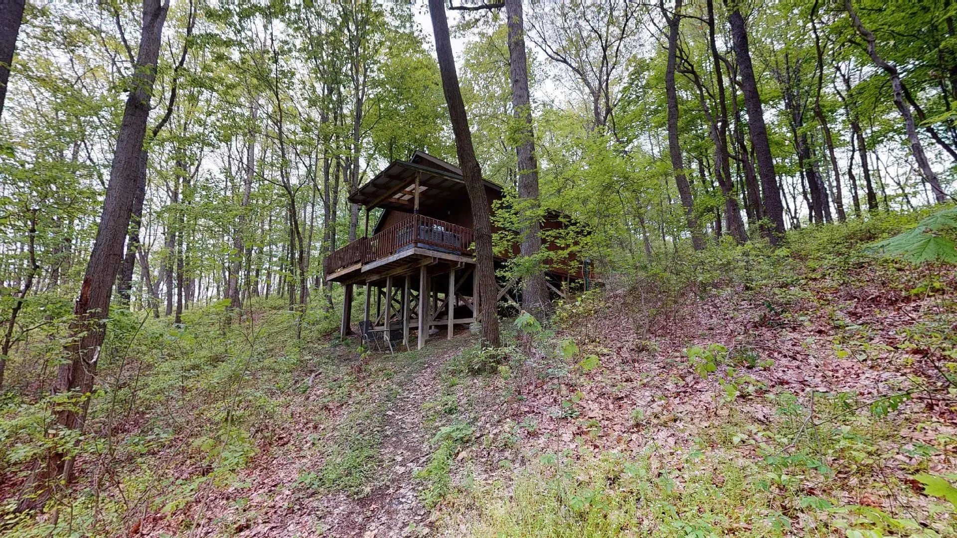 This Scottish croft is hidden down a short gravel trail off the ridge and is more private than our sister cabin Ridgeview. A spiral staircase elevates you to a welcoming loft and the inviting luxury linens on the queen bed. Enjoy the panoramic views while relaxing in the total comfort and wooded seclusion of the Greenbrier. Whether in the club chairs before the gas fireplace, a soak in the hot tub, the smart television ideal to complete your late-night streaming movies on high-speed Wi-Fi, or a piping mug over the dawn on the morning deck; Greenbrier has something for you.